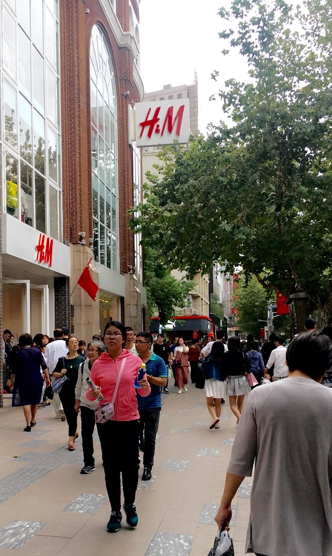 Je suis venue à Shanghaï avec deux camarades de classe: Maike de l’Allemagne et Ndeye Marie du Sénégal. Maike a passé une seule nuit avec nous avant de s’envoler pour la Mongolie. Nous ne sommes pas venues visiter Shanghaï au bon moment. Ce week end a sans doute attiré plus d’affluence que d’habitude en raison des congés pour le jour national de la Chine. Autrement dit la commémoration de la fondation de la République Populaire de Chine. Nous voulions visiter le Musée de Shanghaï mais avec la pluie et le rang interminable à l’entrée, nous avons préféré rentrer à la maison. Je suis venue en Chine en espérant découvrir une culture tout à fait différente du monde occidental. Oui il y a des différences mais voir les enseignes de pratiquement toutes les marques Américaines m’a montrée que l’américanisation est bel et bien passée par là aussi. C’est drôle. Le gouvernement essaie d’empêcher l’accès en ligne aux plateformes occidentales alors que les Chinois mangent du KFC, prennent leur café dans le Starbucks d’à côté et s’habillent chez H&M, Zara, Addidas et Nike. J’avais l’impression de me retrouver dans une capitale Européenne ou Américaine. La rue Huaihuai Road est pleine de toutes ces boutiques de marques, prêtes à vous vider le portefeuille, mais Marie et moi avons résisté.
