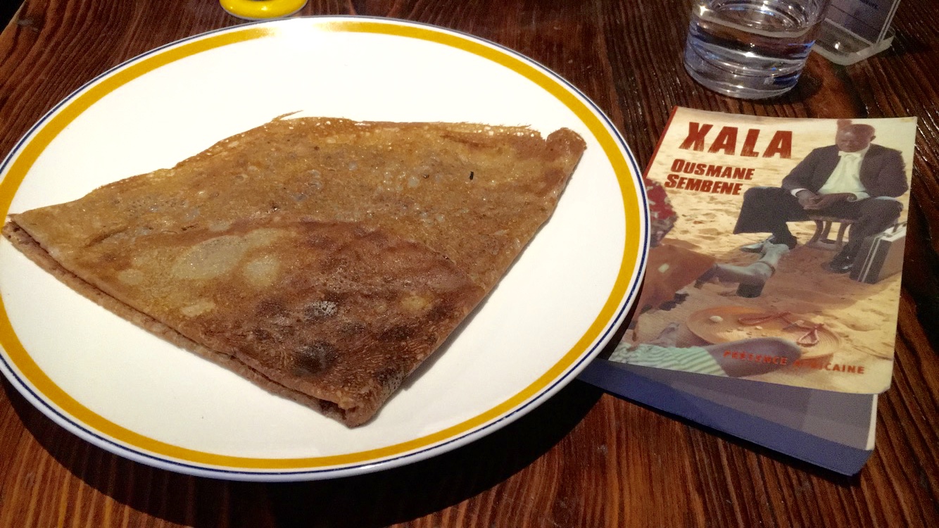 Ça devrait être interdit de servir des plats aussi bons en petite quantité. Sérieusement! Ils servent juste assez pour garder la place du dessert. La sauce bolognaise était hum… Excellente! J’ai tout mangé! Même la tomate cerise coupée en deux et le brin de persil qui ornaient le tout. C’est la deuxième fois que je viens à La Crêperie. A chaque fois je mange sans rajouter la moindre pincée de sel ou de poivre. Tout est parfait pour mon palais. Le hic c’est que c’est tellement bon que tu en veux encore mais tu sais que tu ne devrais pas, au risque de faire de la gourmandise ou de ne pas aimer autant que la première fois. Du coup tu soulèves « Xala », le roman de Sembène Ousmane que tu viens de commencer, et tu lis en attendant la crêpe au Nutella que tu as commandée. La voix de Garou chantant Belle ou accompagnant Céline Dion sur le titre Sous le vent te berce, et tu as l’impression d’être à Paris dans Shanghaï.