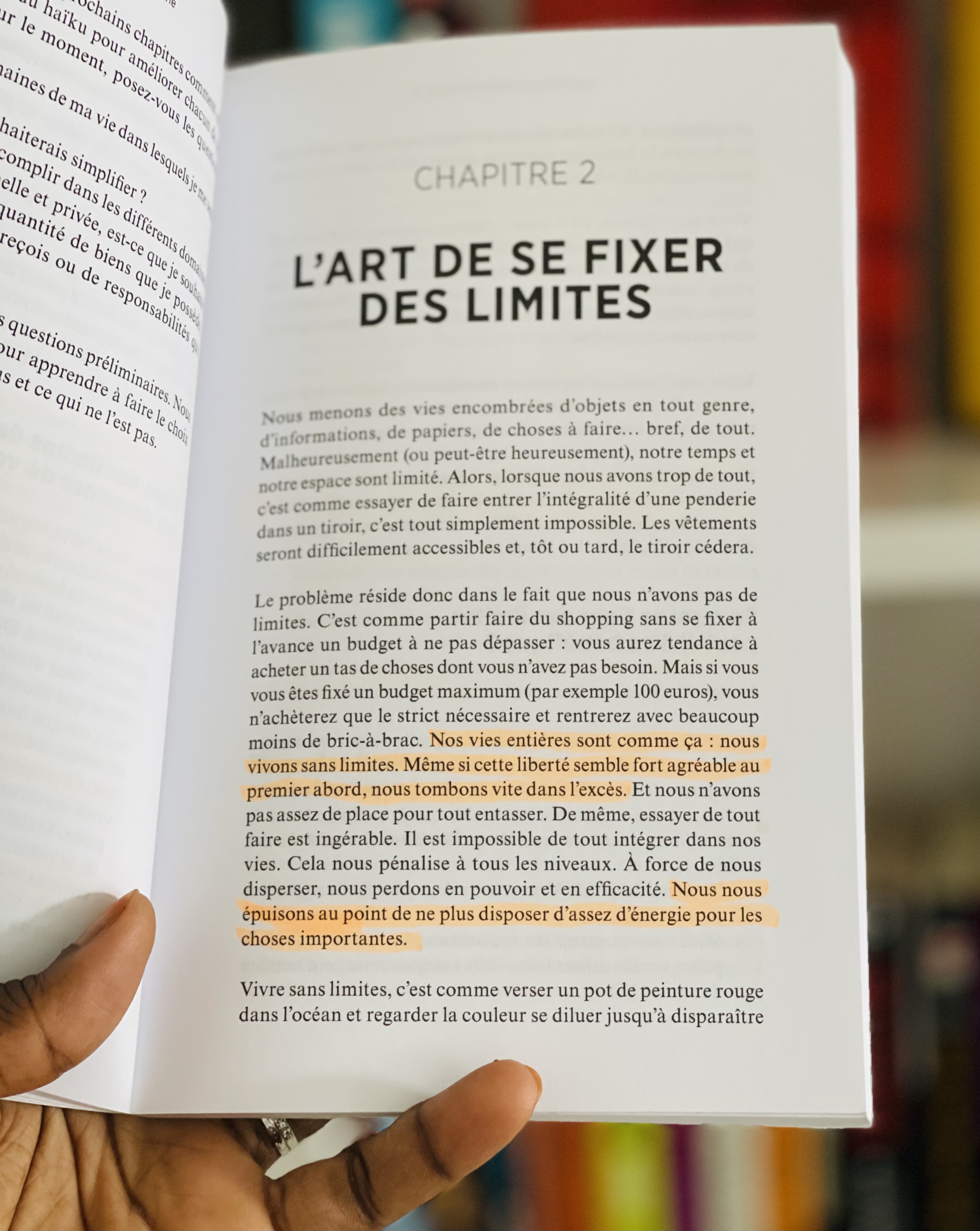 Léo Babauta nous invite à nous fixer des limites, à définir nos valeurs et les objectifs les plus importants pour nous. Nous sommes obligés de faire des choix pour nous focaliser sur les choses qui comptent vraiment. Ce que nous aimons, désirons le plus et qui aura le meilleur impact dans notre vie ou dans celles de ceux que nous aimons. Je ne peux avoir « lire et apprendre » comme valeurs les plus importantes quand je passe plus de temps devant une série ou sur Facebook et Instagram. J’ai donc fixé des limites de temps sur mes réseaux sociaux et j’ai résilié mon abonnement Netflix pour quelques temps.